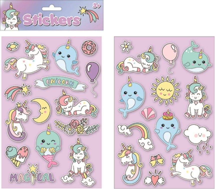 30 Stickers di varie misure sagomati morbidi a tema unicorno come da foto.
